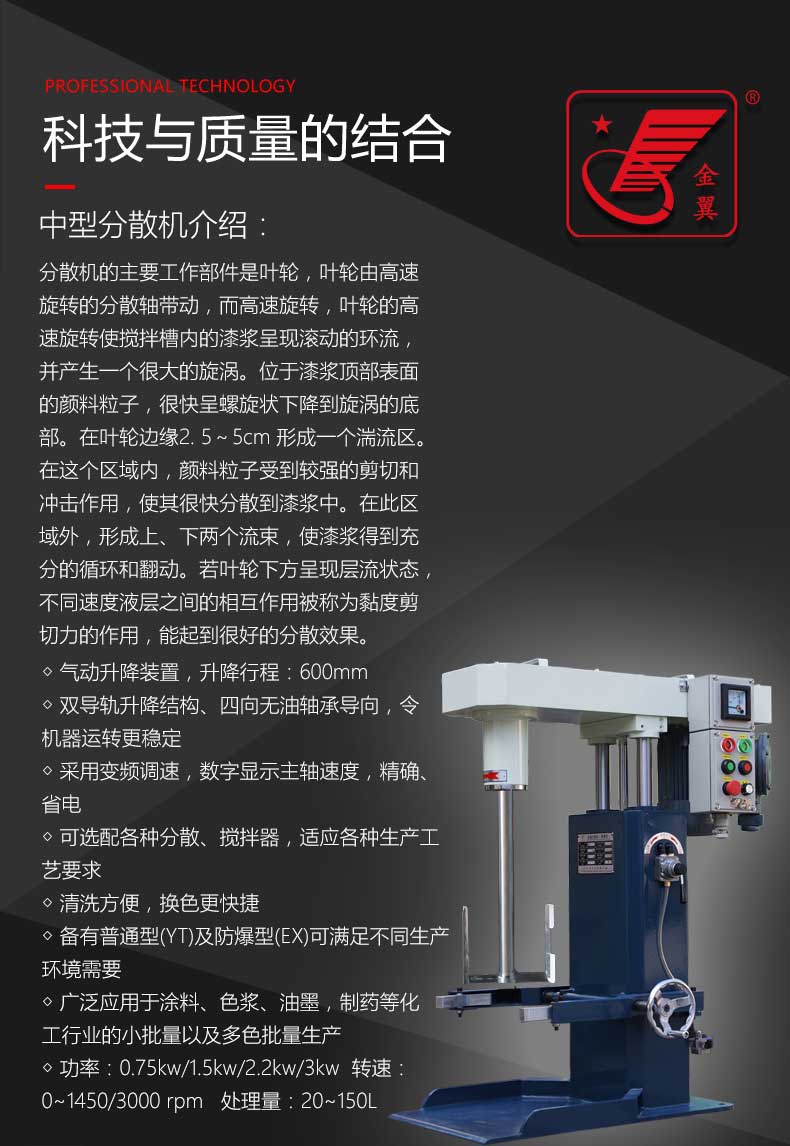 适用于(yú)塗料、油(yóu)墨、染料(liào)、顔料、矽(xī)油、樹脂(zhi)、電子材(cai)料、油漆(qi)、膠粘劑(jì)⛷️、化學、制(zhi)藥、皮革(gé)、化妝品(pǐn)等化工(gōng)行業産(chan)品的液(yè)-固濕法(fǎ)分散攪(jiǎo)拌、混合(he)、溶解的(de)加工設(shè)備。